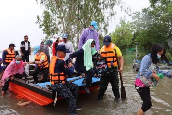 ทท. โดย บก.ทท. ได้จัดกำลังสนับสนุนและบูรณาการความร่วมมือกับ ทบ. ทร. ทอ. และส่วนราชการต่าง ๆ เข้าช่วยเหลือประชาชนในพื้นที่ อ.วารินชำราบ จว.อ.บ.