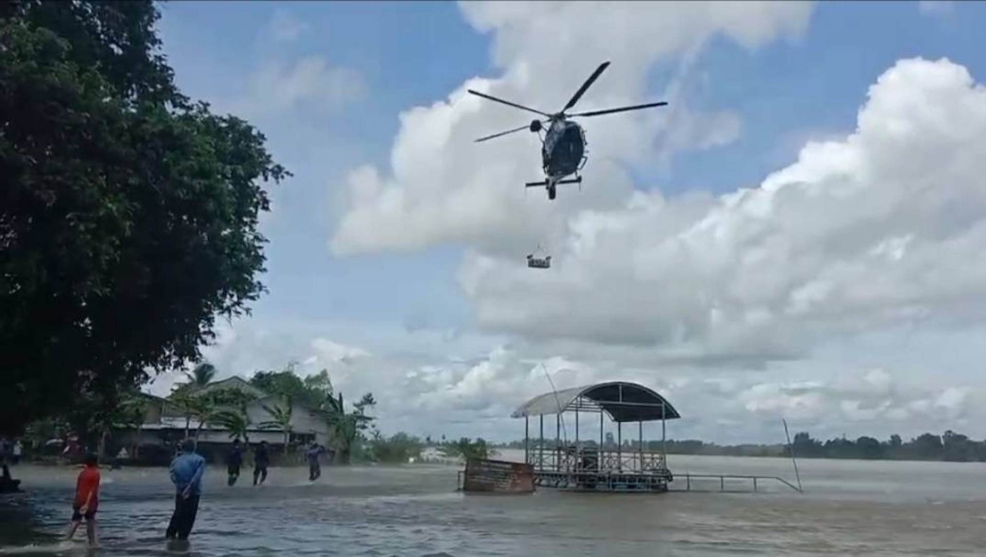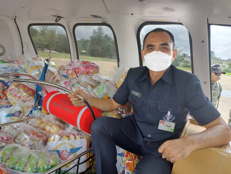 พร้อมทั้ง ได้นำอากาศยานจากกรมแผนที่ทหาร ทำการบินสนับสนุนภารกิจของศูนย์บรรเทาสาธารณภัย หน่วยพัฒนาการเคลื่อนที่ 56 และสำนักงานพัฒนาภาค 5 หน่วยบัญชาการทหารพัฒนา เพื่อนำถุงยังชีพไปแจกจ่ายบรรเทาความเดือดร้อนให้แก่ประชาชนที่ไม่สามารถเดินทางออกจากที่อยู่อาศัยได้ เนื่องจากระดับน้ำท่วมสูง ณ บ้านคูสว่าง อำเภอวารินชำราบ จังหวัดอุบลราชธานี
