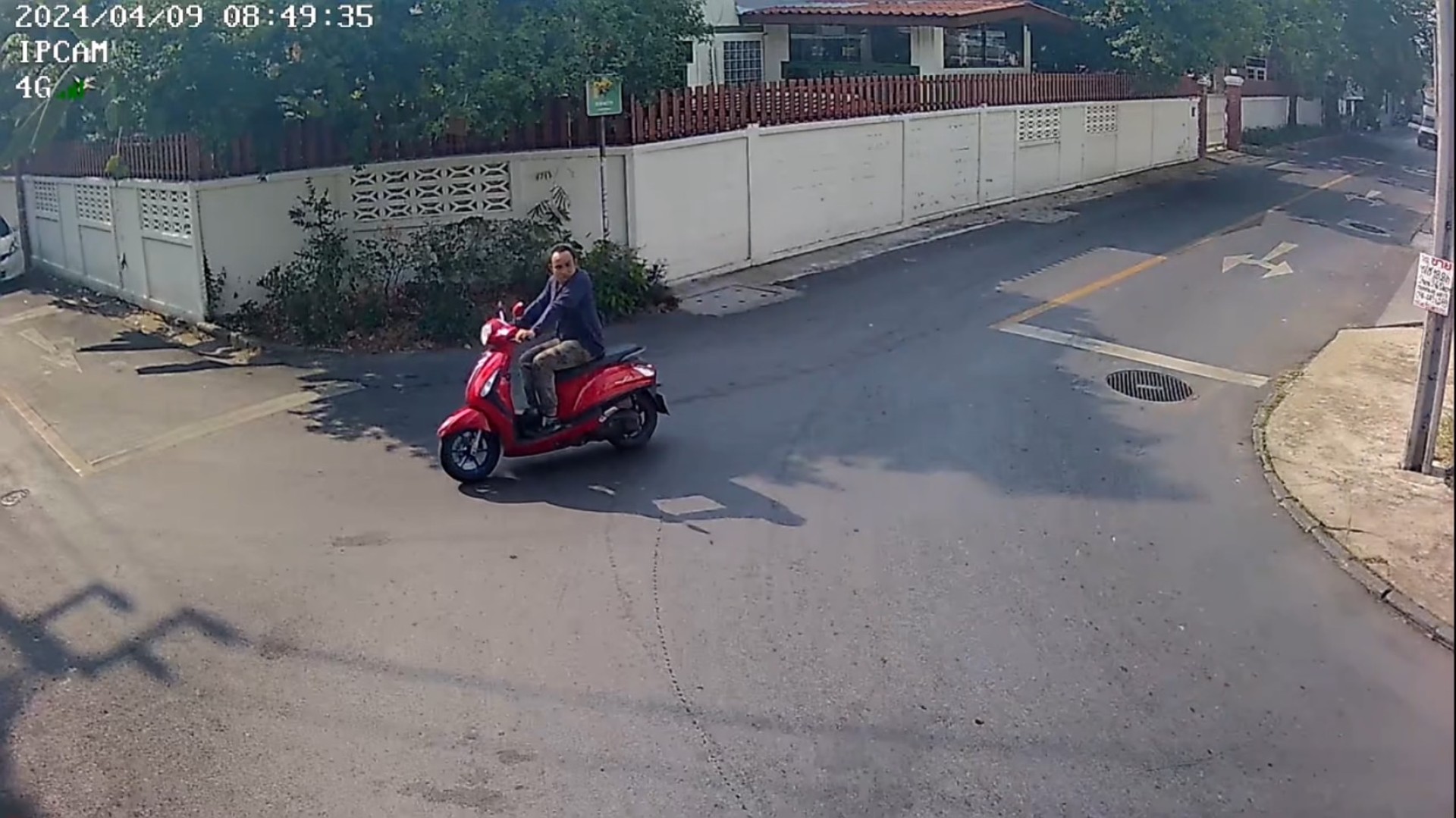 ว่า ขณะที่ตนเองนั่งคร่อม จยย.ยี่ห้อ ยามาฮ่า สีแดง รุ่นแกรนด์ฟีราโน่ หมายเลขทะเบียน 1กจ 7142 ลพบุรี และกำลังจะลงไปเปิดประตูเข้าบ้าน ถูกคนร้ายเป็นชายจำนวน 1 คนเดินเข้ามาทางด้านหลังแล้วใช้มือกระชากดึงและใช้เท้าถีบผู้แจ้งตกจากรถแล้วจากนั้นจึงบิดกุญแจสตาร์ทเครื่องยนต์ขับขี่กลับรถมุ่งหน้าหลบหนีไปทางด้านหลังสถานฑูตภูฏานมุ่งหน้าเข้าหมู่บ้านรัชดานิเวศน์หลบหนีตามเส้นทาง ถ.ประชาอุทิศ ขณะที่ผู้ก่อเหตุขับขี่รถหลบหนีอยู่นั้น ผู้เสียหายได้วิ่งตามผู้ก่อเหตุ ร้องเรียกให้คนช่วยได้เกิดสะดุดล้มเป็นเหตุได้รับบาดเจ็บเพิ่มเติมอีก