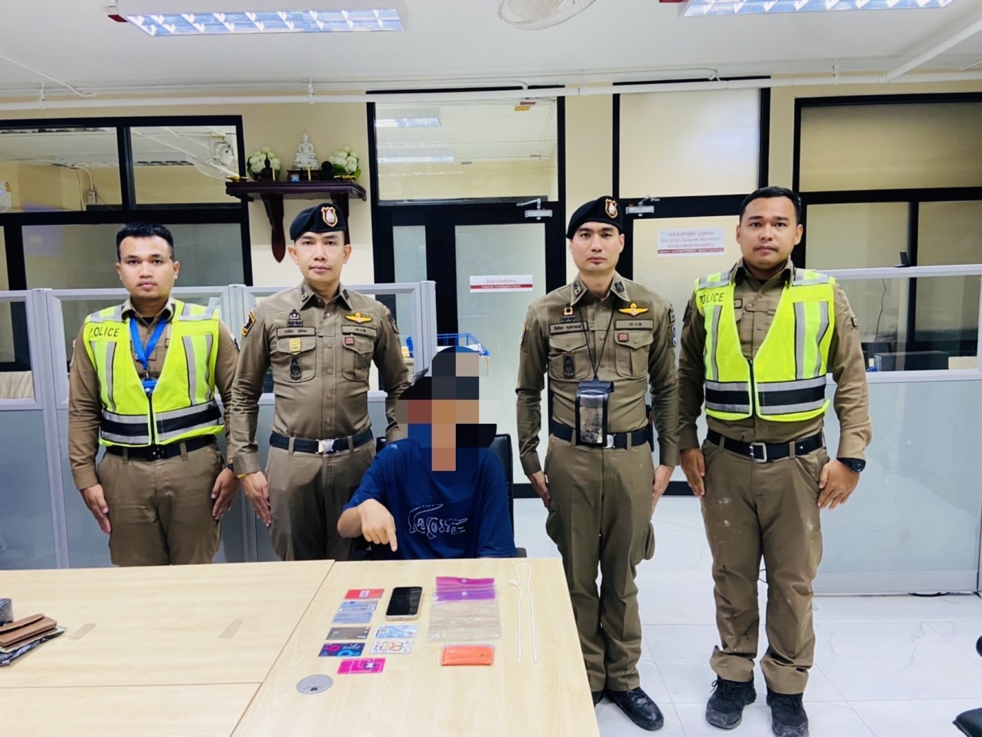 ประจำจุดตามสถานที่เกิดเหตุ เพื่อรักษาความปลอดภัยและความสงบเรียบร้อย ภายในงานเทศกาลสงกรานต์ ได้รับแจ้งจาก น.ส.ทักษิณา แสงพันธุตา เลขบัตรประชาชน 1-1012-00285-33-3 (ทราบชื่อภายหลัง) ว่ามีมิจฉาชีพ (นาย ปิตินัฐ ปิยะสติ ทราบชื่อภายหลัง) แฝงตัวเข้ามาภายในงาน และพบเห็นว่าเมื่อมิจฉาชีพคนดังกล่าวได้พบเห็นเจ้าหน้าที่ตำรวจที่กำลังปฏิบัติหน้าที่อยู่นั้น ก็ได้โยนซอง ตามของกลางรายการที่ 6 มาใส่น.ส.ทักษิณาฯ ซึ่งเป็นอาการพิรุธต้องสงสัย ว่าจะเป็นมิจฉาชีพ น.ส.ทักษิณาฯ จึงได้แจ้งให้เจ้าหน้าที่ตำรวจชุดจับกุมทราบ และมอบซอง ตามของกลางตามรายการที่ 6 ที่ นายปิตินัฐฯ