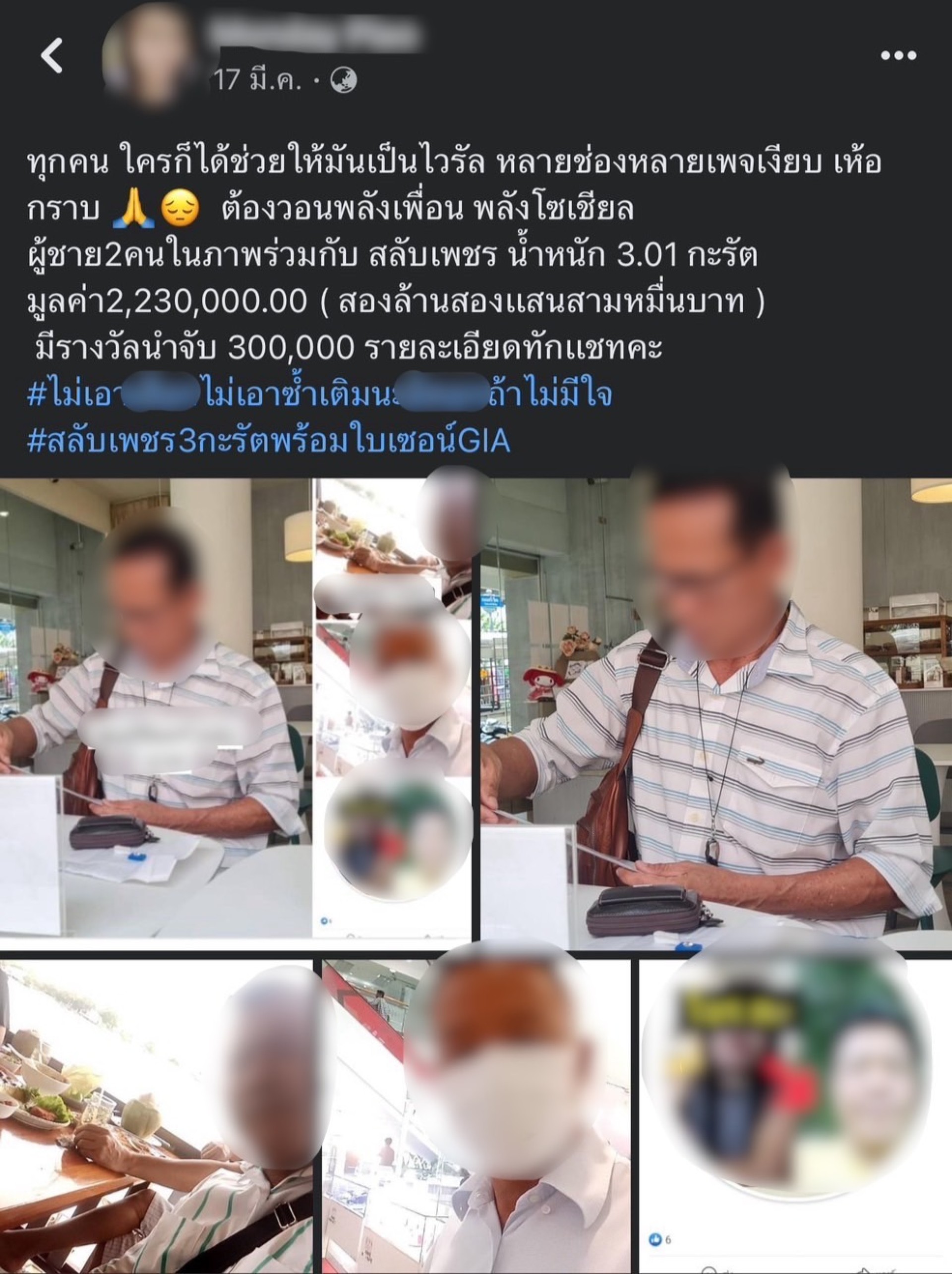 จะเป็นคนร้ายที่อาจจะวางแผนมาก่อเหตุได้ ทั้งนี้ไม่แนะนำให้จำหน่ายอัญมณีผ่านทางช่องทางออนไลน์ เนื่องจากเป็นทรัพย์สินที่มีมูลค่าสูง