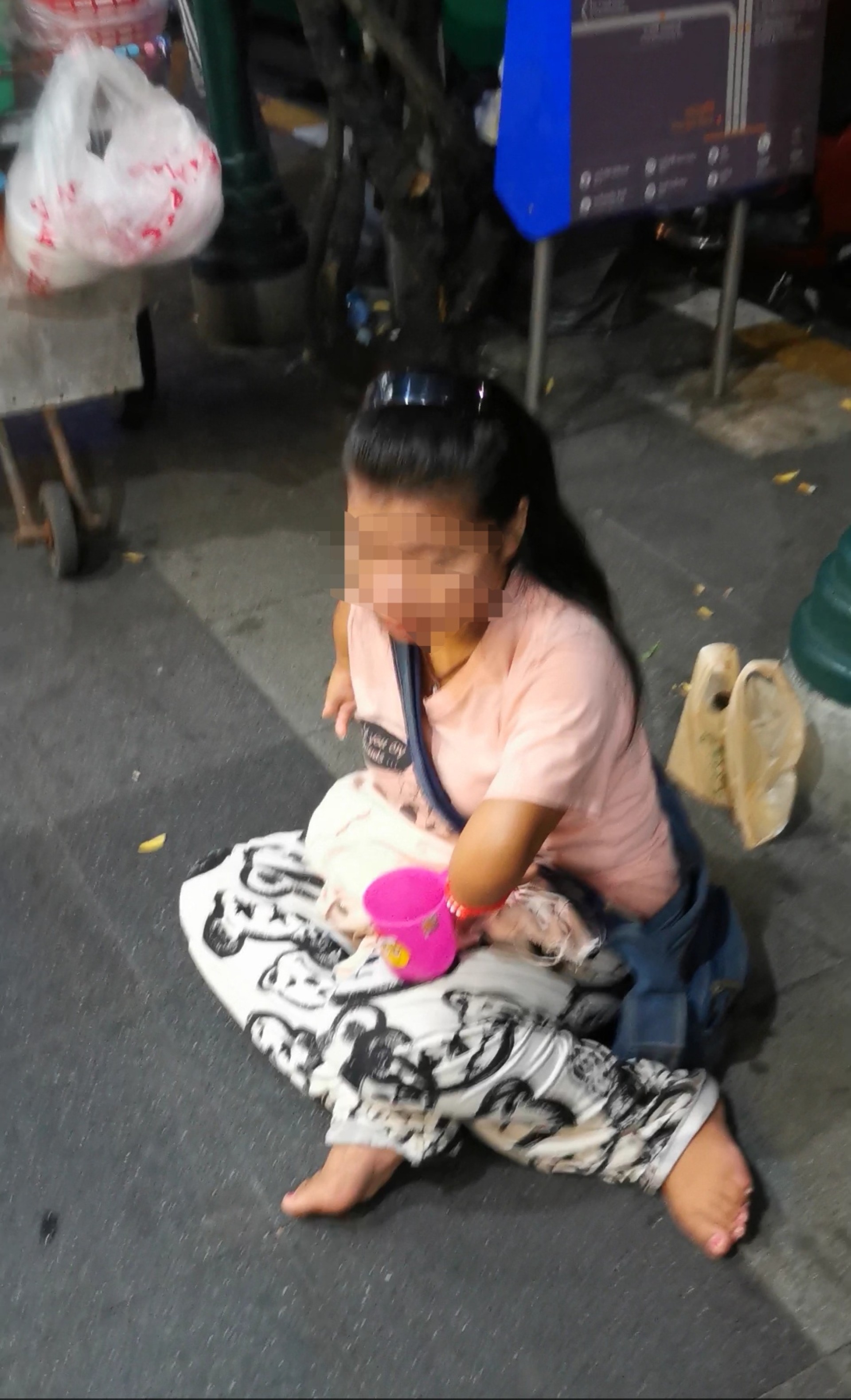 โดยจากการซักถามผู้ถูกจับซึ่งเป็นหญิงสาวชาวกัมพูชารายหนึ่งให้เจ้าหน้าที่ดูภาพในโทรศัพท์มือถือพบว่าหากไม่ได้มานั่งขอทานก็จะแต่งตัวสวยเหมือนนักท่องเที่ยวทั่วไป เมื่อจะมาทำการขอทานก็จะเปลี่ยนเครื่องแต่งกายให้ดูทรุดโทรมเพื่อให้คนทั่วไปสงสารและให้เงิน