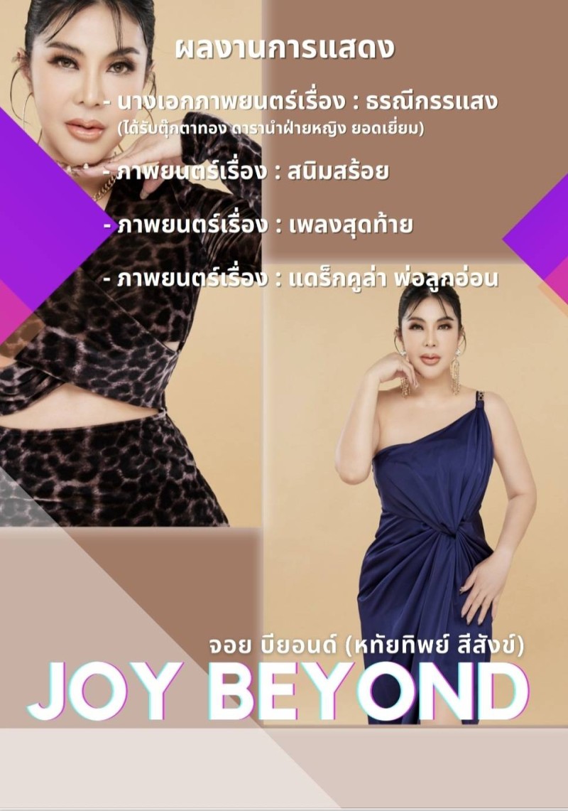 จอย บียอนด์ "หทัยทิพย์ สีสังข์" ดารานักแสดงที่มีผลงานการแสดงหลายเรื่อง อาทิ : นางเอกภาพยนตร์