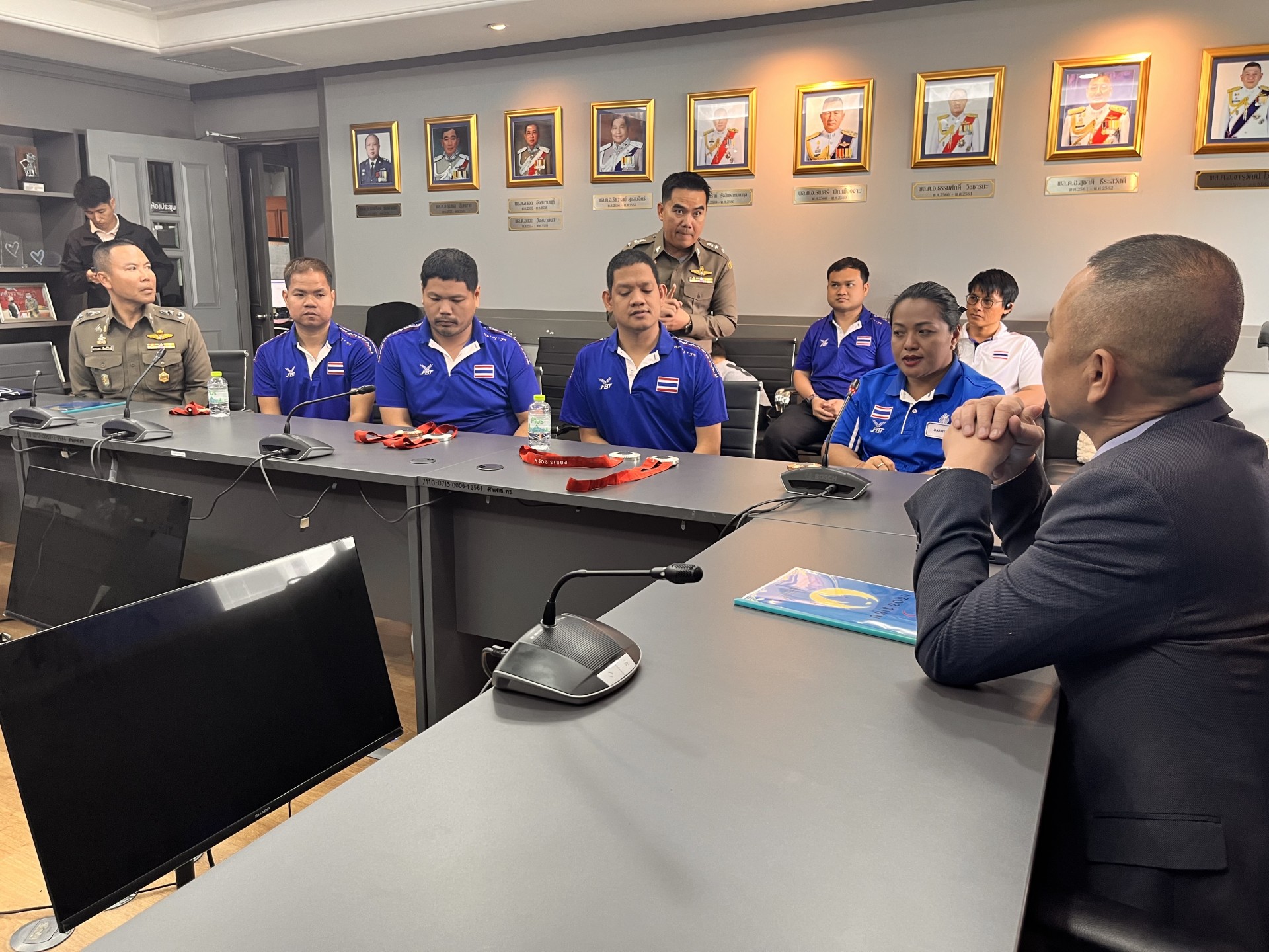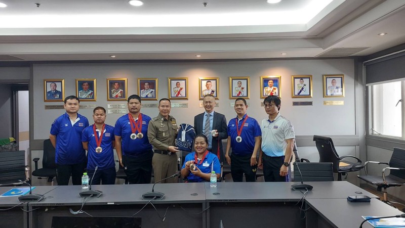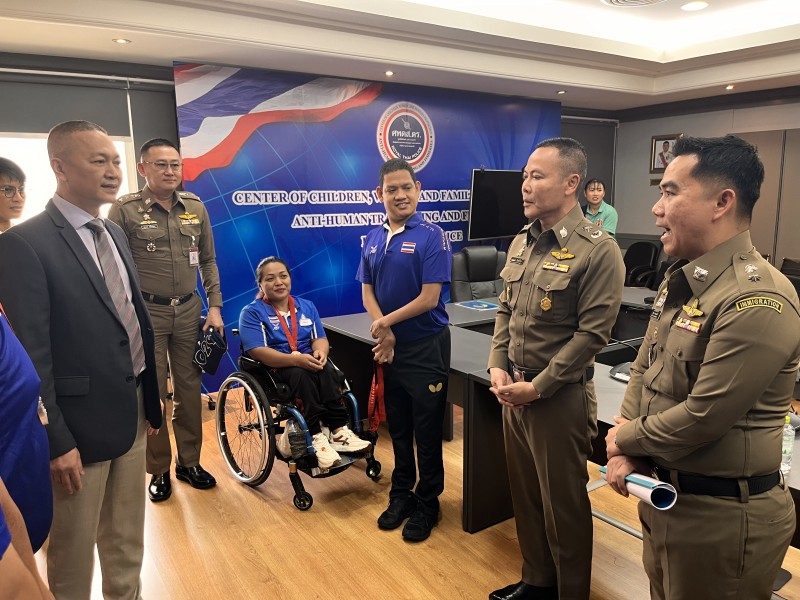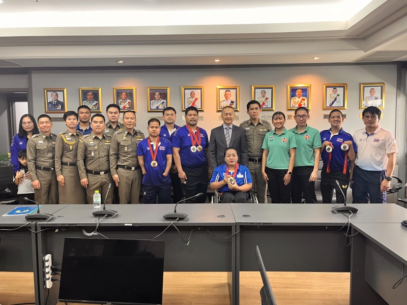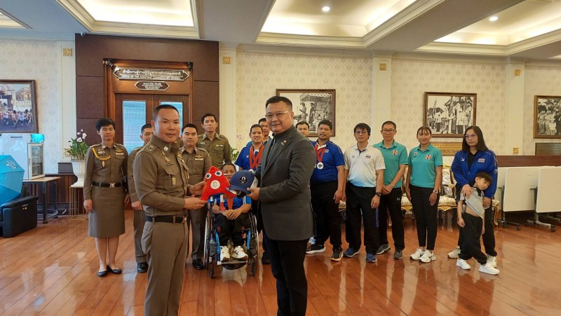 พ.ต.ท.สุริยะ พ่วงสมบัติ รองผกก.สืบสวน บก.ตม.1 ผู้ฝึกสอนกีฬาเทเบิลเทนนิสคนพิการทีมชาติไทยชุดพาราลิมปิกเกมส์ 2024 ครั้งที่ 17 ที่กรุงปารีส สาธารณรัฐฝรั่งเศล นำคณะผู้ฝึกสอน เข้าพบ พล.ต.ท.ธัชชัย ปิตะนีละบุตร ผู้ช่วย ผบ.ตร.ในฐานะ ประธาน ก.อ.บ.ตร. และพล.ต.ท.กรไชย คล้ายคลึง ผู้ช่วย ผบ.ตร.เพื่อขอบคุณและรายงานผลการแข่งขัน กีฬาพาราลิมปิกเกมส์ ครั้งที่ 17 ที่ประเทศฝรั่งเศส ของทีมเทเบิลเทนนิสคนพิการทีมชาติไทย ที่สามารถคว้าได้ 4 เหรียญเงิน 5 เหรียญทองแดง