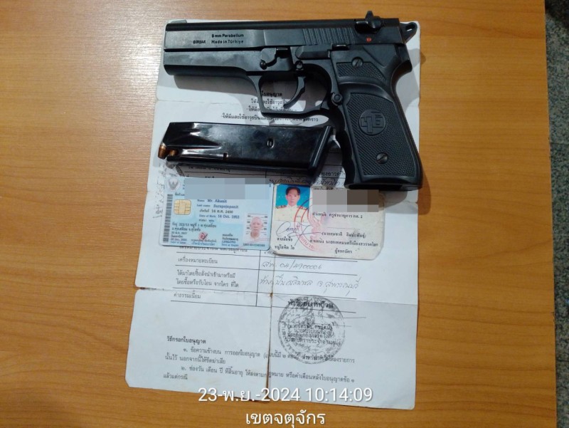 1.อาวุธปืนสั้น กึ่งอัตโนมัติ ขนาด 9 มม. จำนวน 1 กระบอก