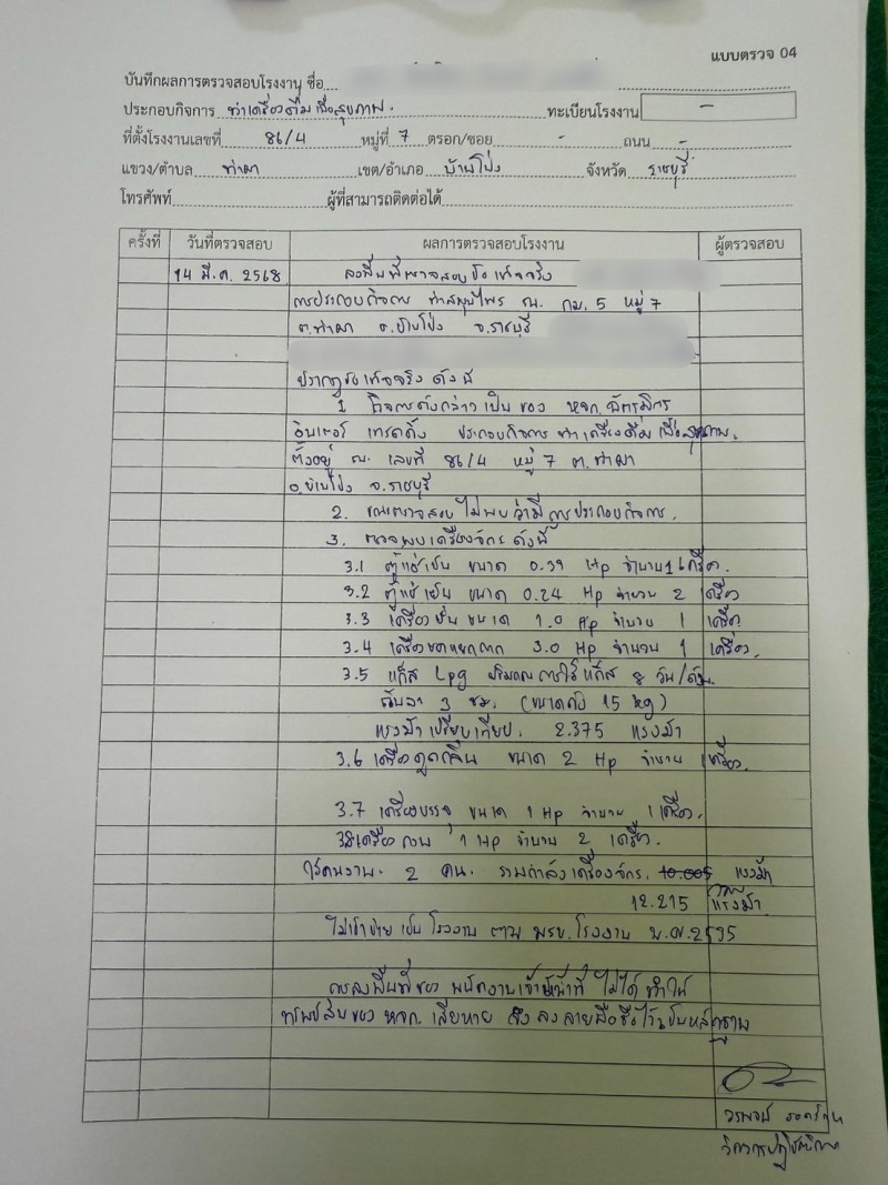 เมื่อวันศุกร์ที่ 14/3/68 เวลา 10:00 น. ที่หมู่ 7 ตำบลท่าผา อำเภอบ้านโป่ง จังหวัดราชบุรี นายวรพจน์ รอดรักษา วิศวกรปฏิบัติการ ได้ลงพื้นที่ตรวจสอบโรงงานเกี่ยวกับเครื่องดื่มเพื่อสุขภาพ พร้อมให้ความรู้ต่างๆ เป็นอย่างดี ลงพื้นที่ตรวจสอบเครื่องจักร แต่ละชนิดว่าอยู่ในสารระบบที่ถูกต้องไหม ตรวจสอบแรงม้าของเครื่องจักรแต่ละเครื่องว่าเกินกฏหมายที่กำหนดไว้ไหม